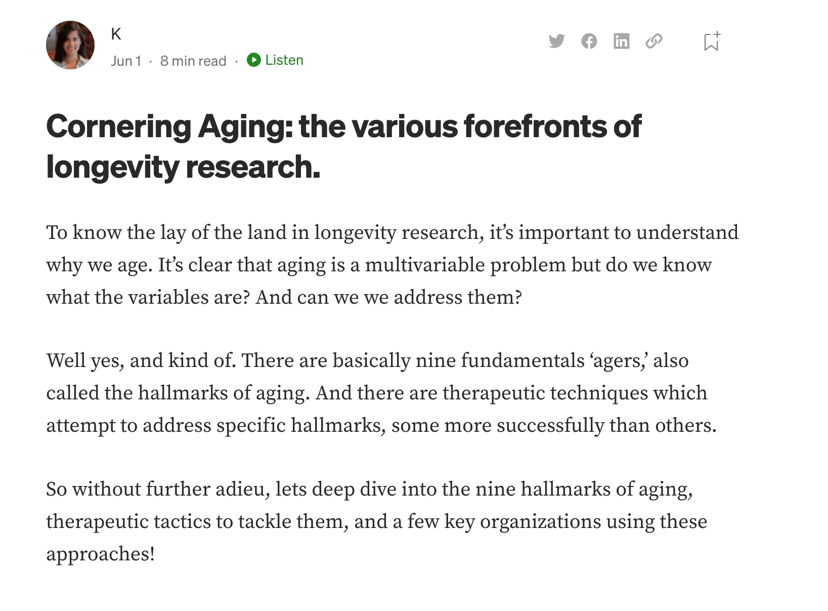 Learning should not be limited to the classroom. My curiousity has me reading research papers on topics ranging from anti-aging, quantum biology, to the hypothalamus! I've produced a number of articles and videos on these topics on Medium and YouTube.